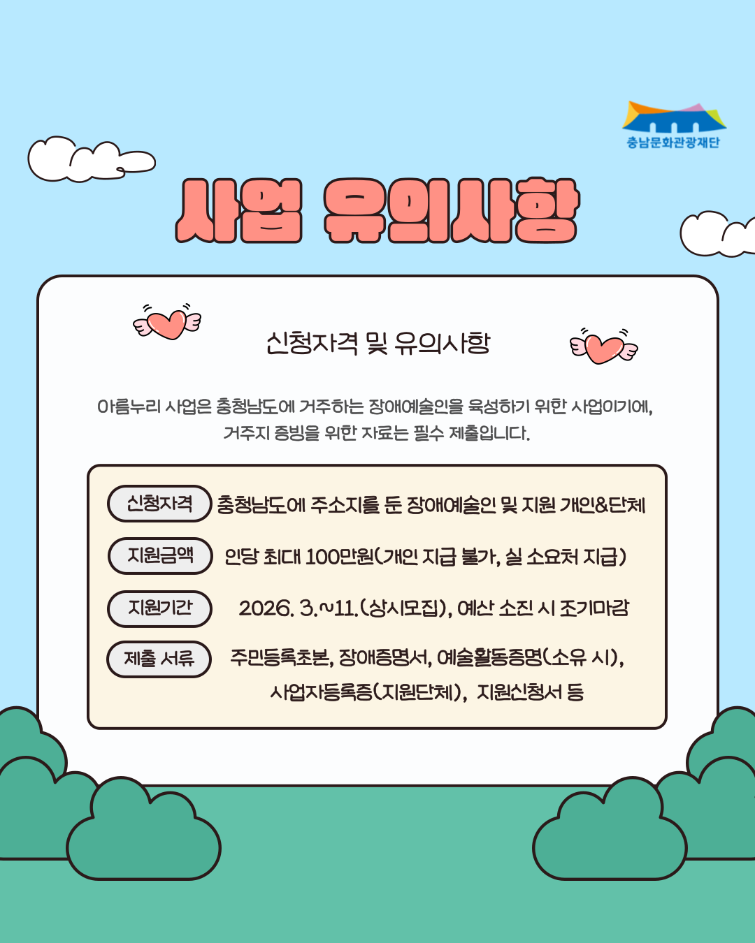 충청남도 거주 장애예술인 및 장애예술인 및 장애인 지원 단체 및 강사 등 개인