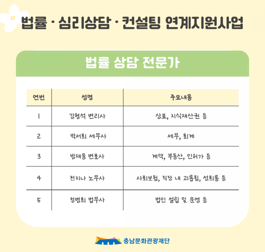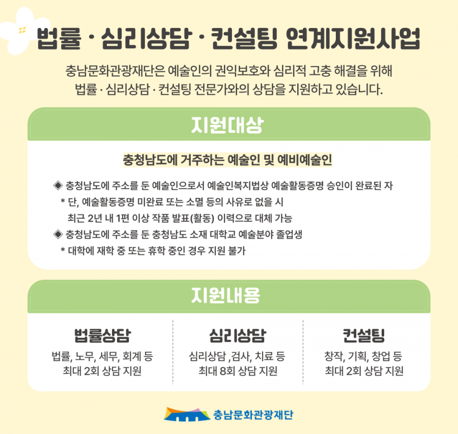 충남문화관광재단에서는 충남 예술인의 권익 보호와 심리적 안정 지원을 위해