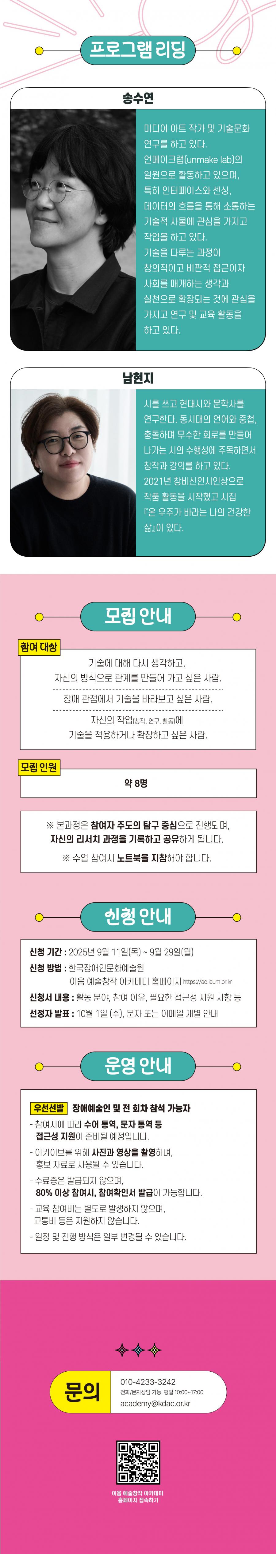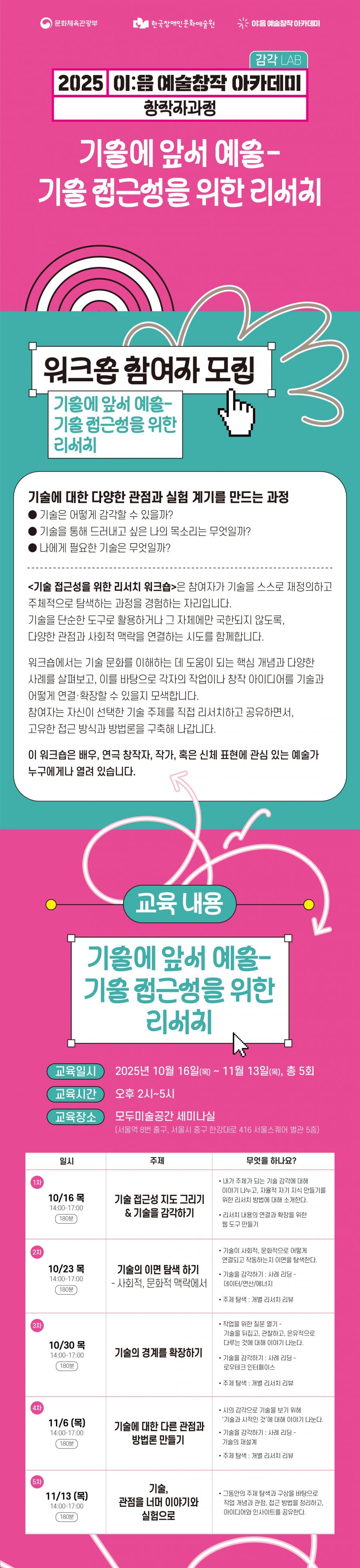 [2025 이음 예술창작 아카데미] 기술에 앞서 예술 - 기술 접근성 워크숍 참여자 모집